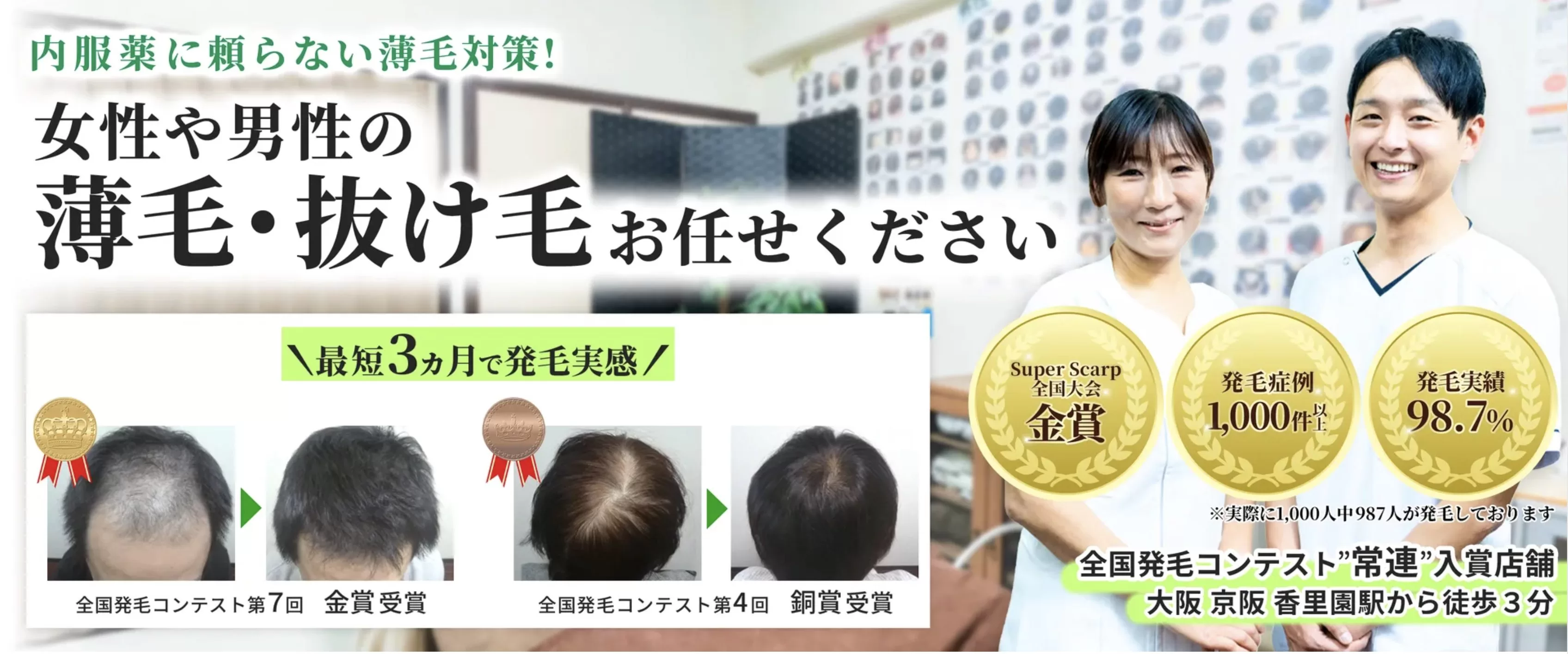 スーパースカルプ発毛センター寝屋川枚方店様は、薄毛改善・発毛に特化した専門サロンとして10年以上の実績を持ち、全国から相談が集まる“駆け込み寺”的存在として支持されています。